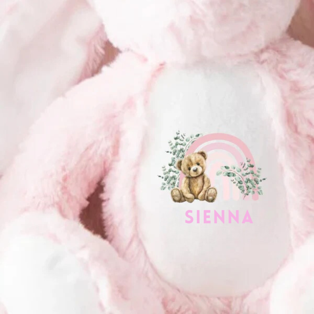 Personalised Rainbow Design Bunny - Pink